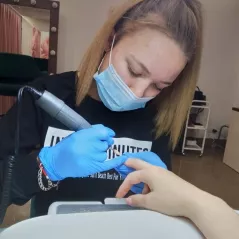 3-й день: теорія+практика: дипломна, самостійна робота учениці (відпрацювання на моделі зняття+манікюр+покриття з укріпленням)